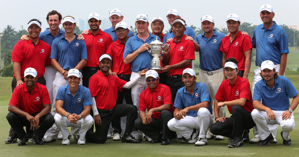 IT’S A DRAW (10-10). Team Asia had the edge during the final day of Singles matches but wins by Team Europe Captain, Miguel Angel Jimenez (ESP) and Joost Luiten (NED) secured Team Europe a hand on the trophy at the 2014 EurAsia Cup presented by DRB-Hicom, at the Glenmarie Golf & Country Club, Kuala Lumpur, Malaysia. Picture: David Lloyd / www.golffile.ie