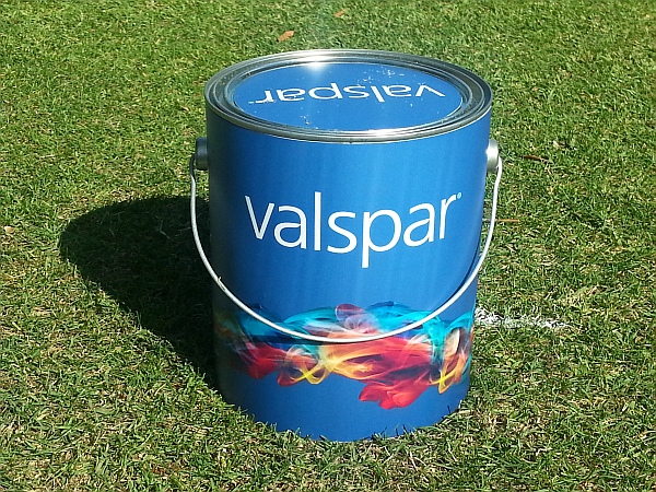 Valspar paint cans acting as tee markers in this week’s $US 5.8m PGA Tour event. (Photo – www.golfbyoutourmiss.com)