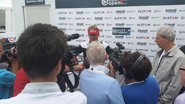 Victor Dubuisson facing the French press after his second round.  (Photo - www.golfbytourmiss.com)