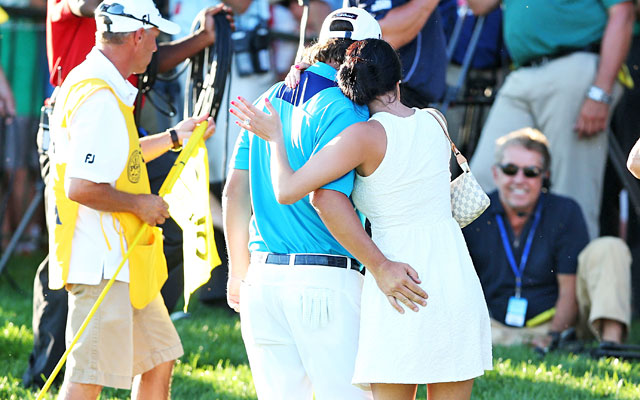 Now the choice of ‘Butt Rubbed’ Filet Mignon brought a smile to the face of many of Dufner’s supporters as it was the scenes in the seconds after last year’s Oak Hill success of Dufner grabbing the backside of his wife that many will remember.