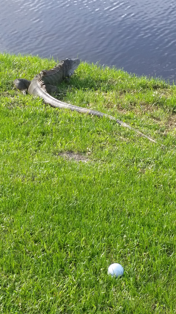 ….. A second iguana is spotted lying just meters further towards the green at the 5th fairway – President GC, West Palm Beach, FL