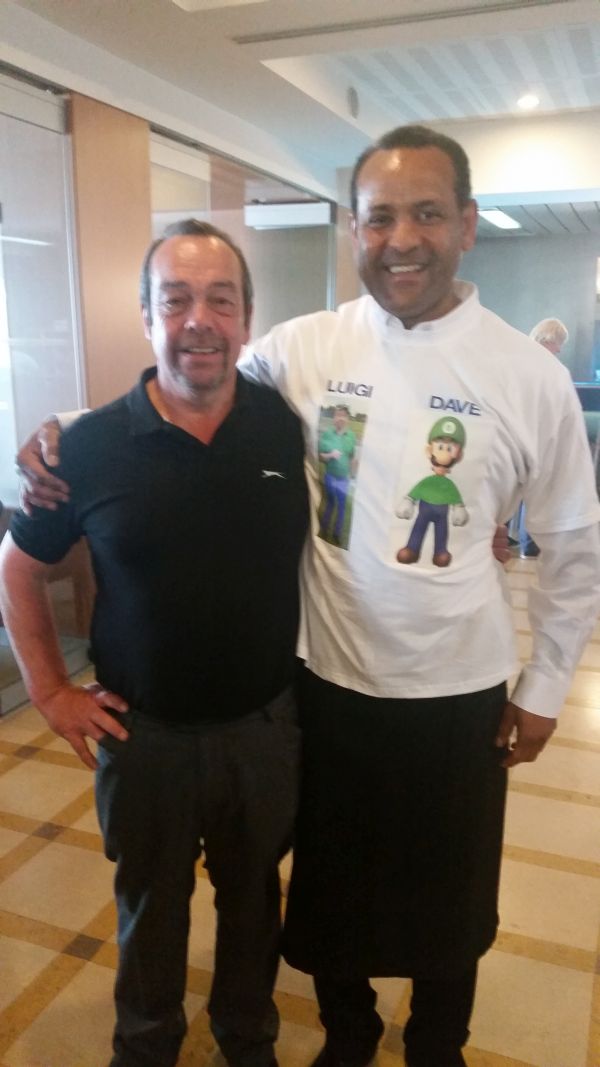 Alan Reid and captain of Reid's Raiders wishes Peter Roger of Roger's Dodgers 'good golfing' this week Lisbon.