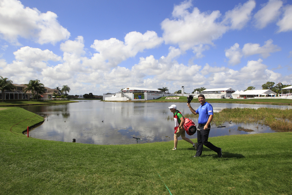 Padraig Harrington acknowledges the crowd as he walks onto the 17th green and the second play-off hole knowing he's surely captured a second Honda Classic. (Photo - Fran Caffrey/www.golffile.ie)