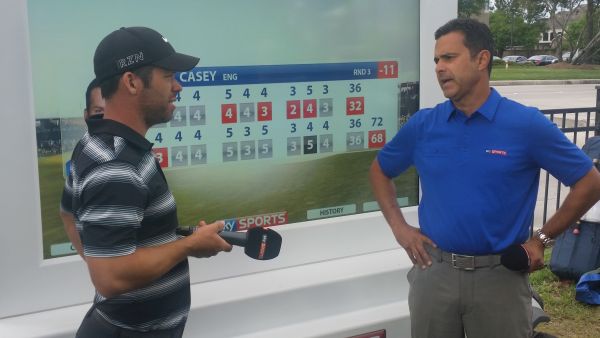 Paul Casey getting ready to speak to SKY Sports after his round of 68. (Photo - www.golfbytourmiss.com)
