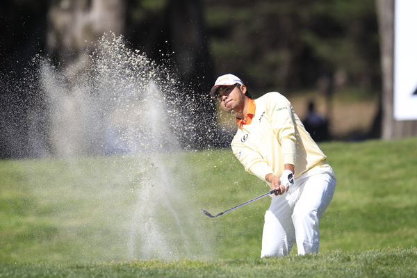 Japan’s Hideki Matsuyama blasts out of a bunker on day one of the 2015 WGC – Cadillac Match-Play Championship. (Photo – Fran Caffrey/www.golffile.ie)