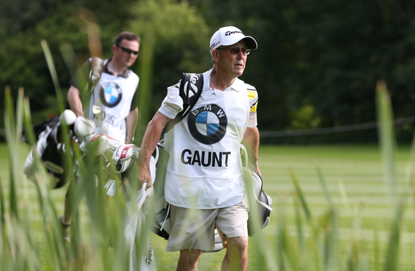Supercaddy John ‘Ronnie’ Roberts on route to taking Daniel Gaunt to a share of the lead on day one of the BMW International Open. (Photo – David Lloyd/www.golffile.ie)
