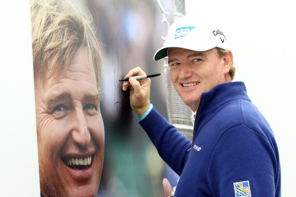 Ernie Els happy to sign his name to a picture of himself at the Alfred Dunhill Links.