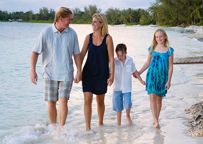 Ernie Els and his young family enjoying fun walking along a beach.