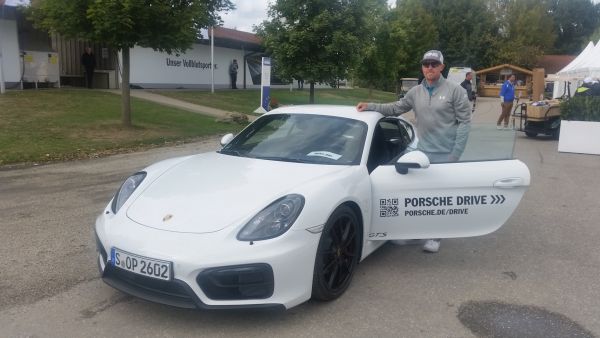 First it was a German beer on Monday in Munich and then today, and on the eve of the Porsche European Open, the current World No. 42 got to take one of the sponsors products for a test drive on the autobahn.