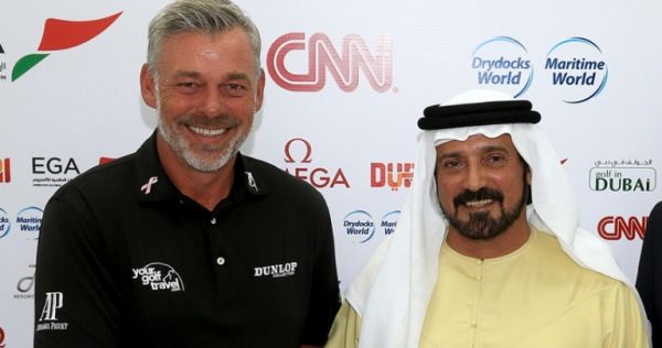 Darren Clarke and seen here with Mohamed Juma Buamaim, vice chairman and CEO of golf in DUBAi, to make his debut in next week’s penultimate MENA Tour event.