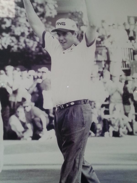 The photograph in the  Metropolitan Golf Club the moment Lee Westwood claimed victory over Greg Norman in the 1997 Australian Open.  (Picture: Bernie McGuire www.golffile.ie)