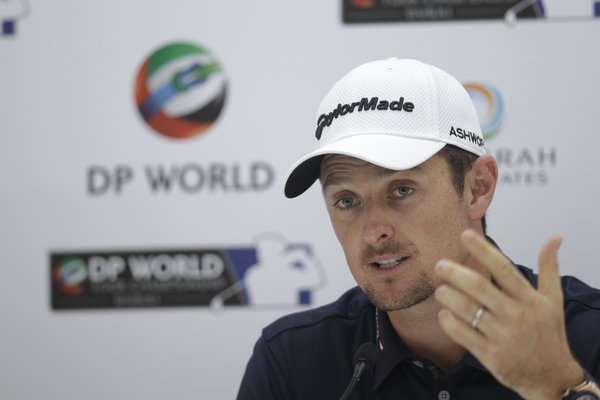 Justin Rose (ENG) speaking during his press conference ahead of the DP World Tour Championship, Earth Course, Jumeirah Golf Estates, Dubai, UAE. 18/11/2015.