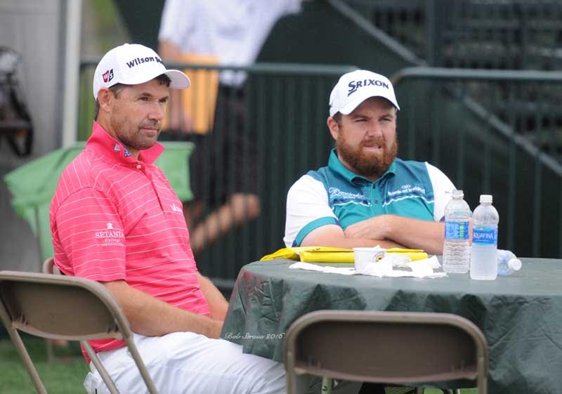 The Irish pair of Padraig Harrington and Shane Lowry 'chewing the fat' ahead of this week's Sheill Houston Open. (Photo - ©2016 Bob Straus.GolfSourse Images)