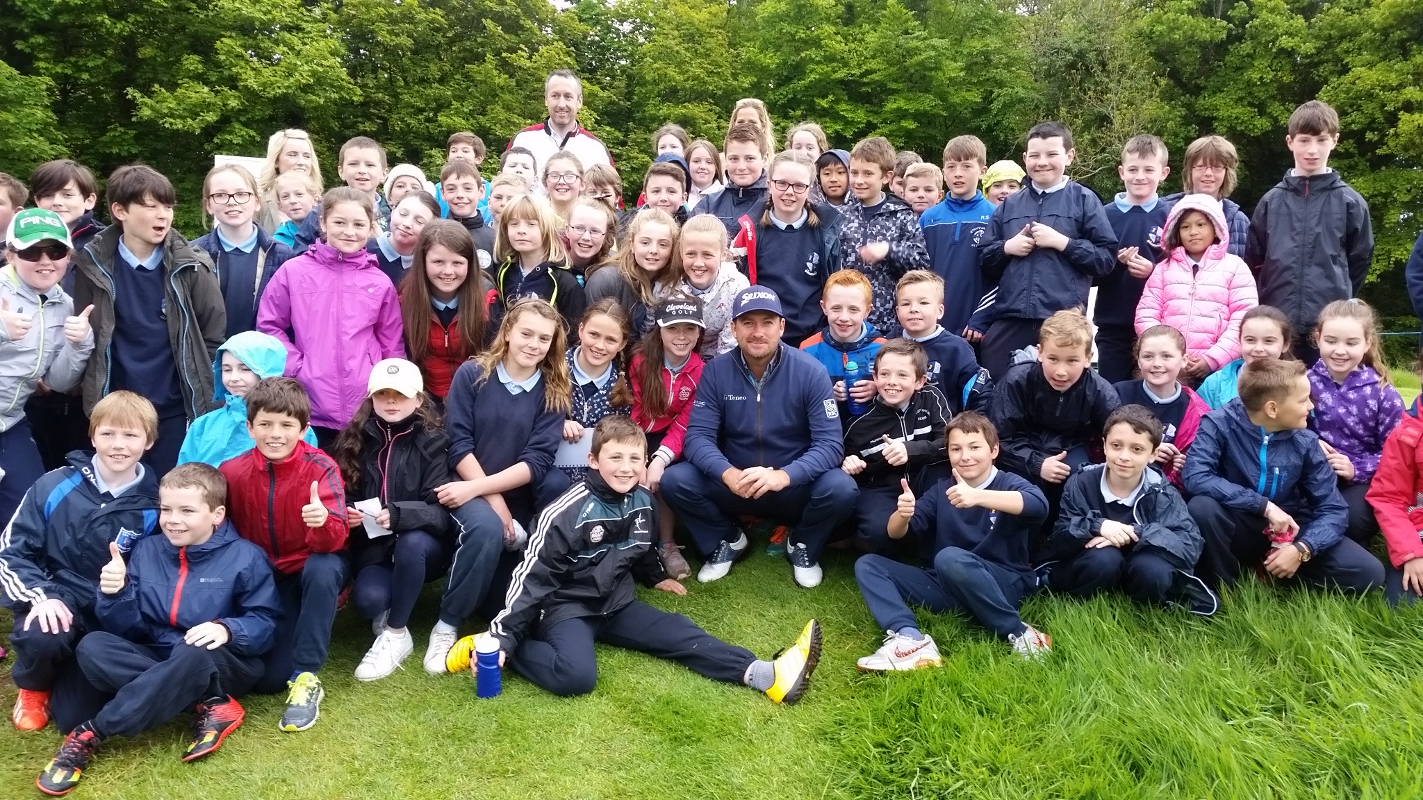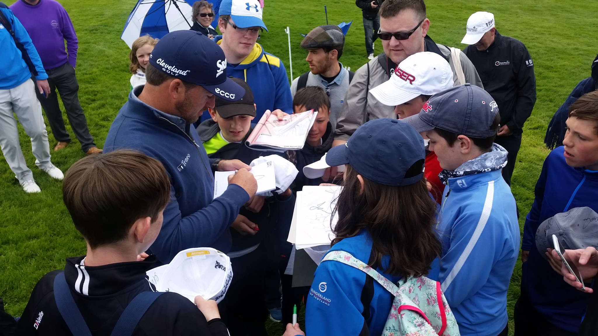 He delighted the entire class of a local primary school who followed him around for a few holes when he sat with them to have a photograph taken on one tee.