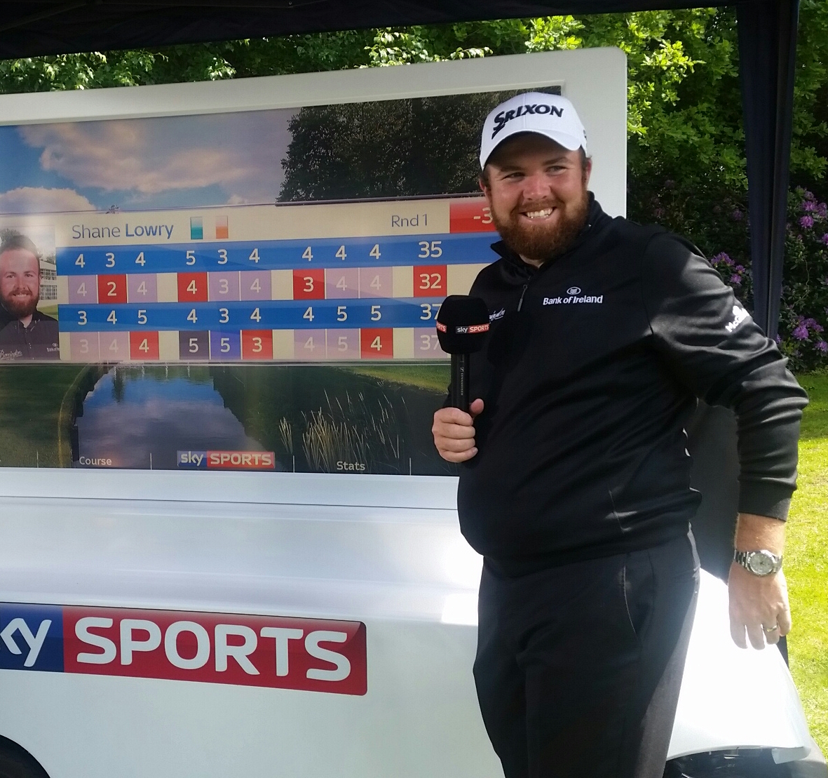 Shane Lowry chats with SKY Sports and clearly delighted in posting a 69. (Photo – www.golfbytourmiss.com)