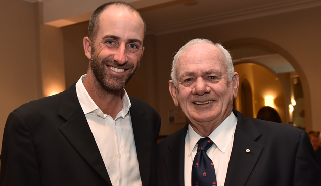 Australia’s only two U.S. Open winners – Geoff Ogilvy and David Graham at the 2015 Australian Golf Writers Annual Dinner in Sydney (Photo – www.golfbytourmiss.com)