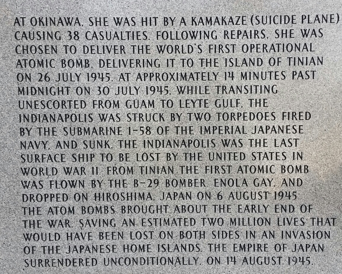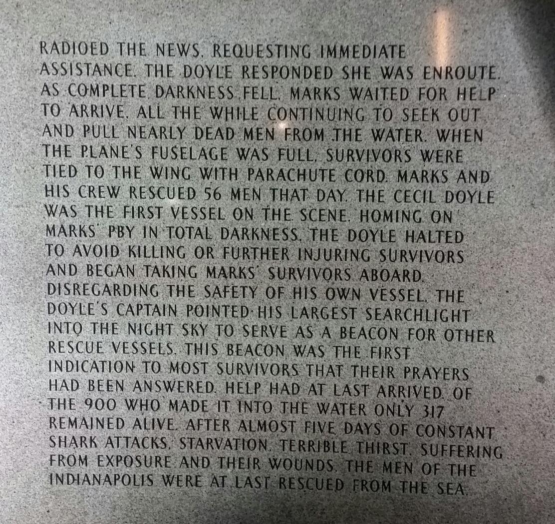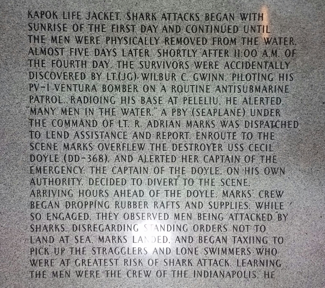 And this week I have been fortunate to visit a memorial erected by the survivors of the USS Indianapolis in memory of those who didn’t survive the sinking and the sharks.