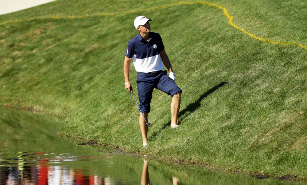 Stenson secured the first point for Europe but in controversy when Spieth was deemed to have caused his ball to move in a water hazard at 16 and under the rules forfeited the hole.