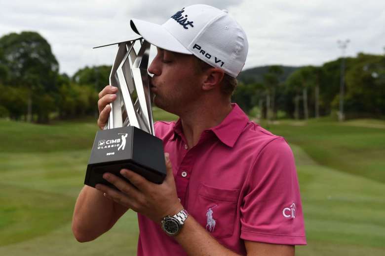 American Justin Thomas produced a sizzling final round 64 and in the process coming from four shots behind to win by four to retain his CIMB Classic title in Malaysia.