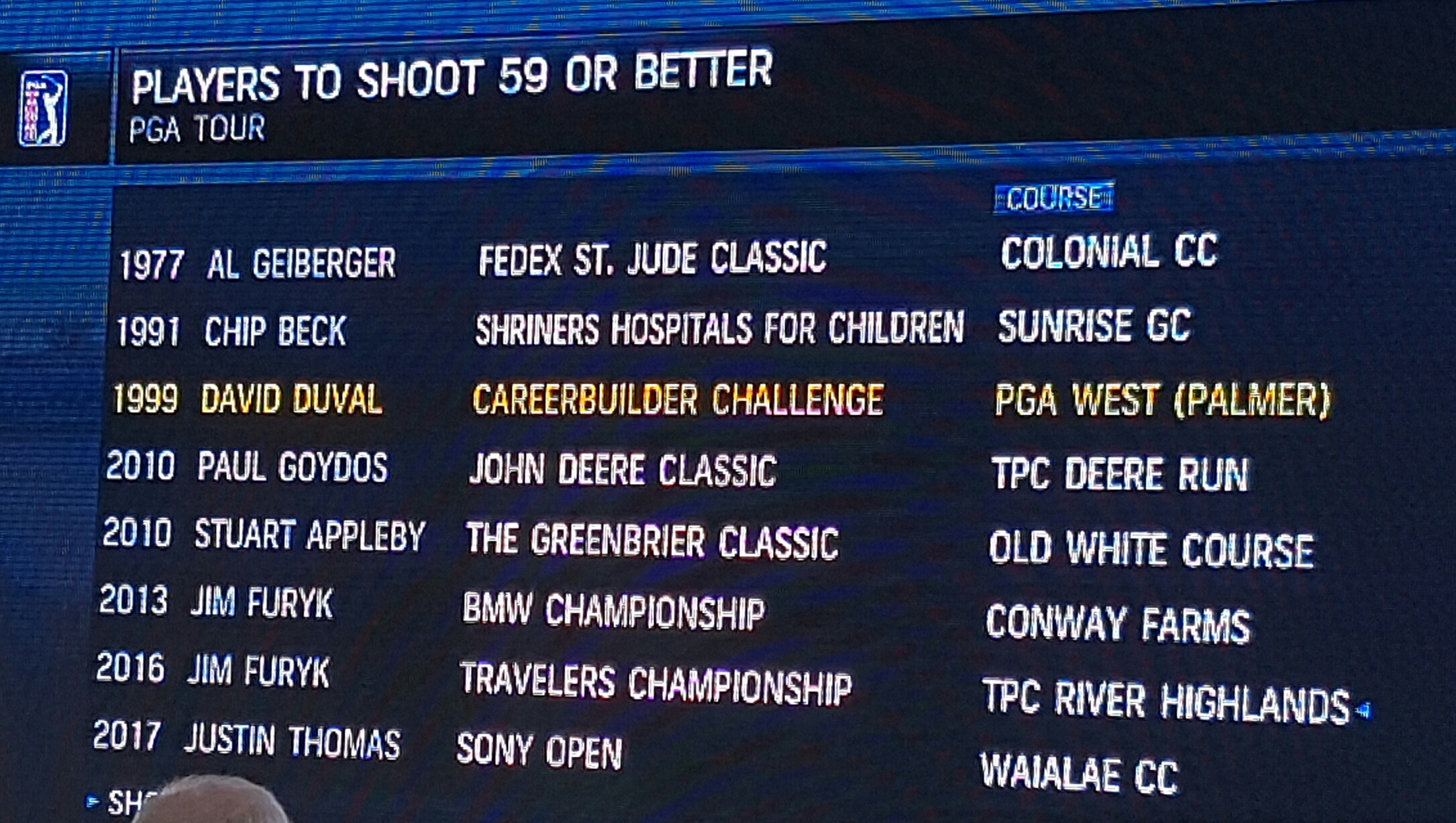 - Ninth score of 59 in PGA Tour history. (Jim Furyk shot 59 in 2013 and then 59, but on route to a 58 in last year’s Travellers).