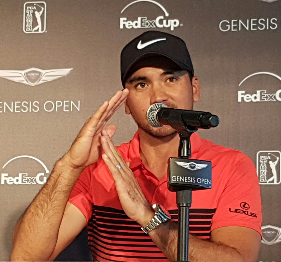 World No. 1 Jason Day making a point during his pre-Genesis Open press conference. (Photo – www.golfbytourmiss.com)