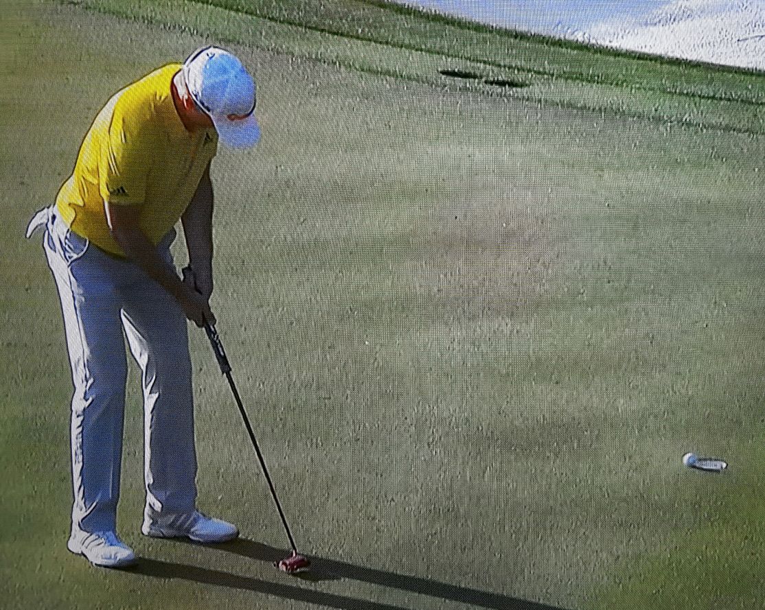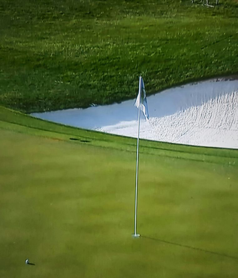 And he didn’t disappoint in landing his tee shot to some six feet from the flag and rolling in the birdie putt and thus avoid a crescendo of booing.