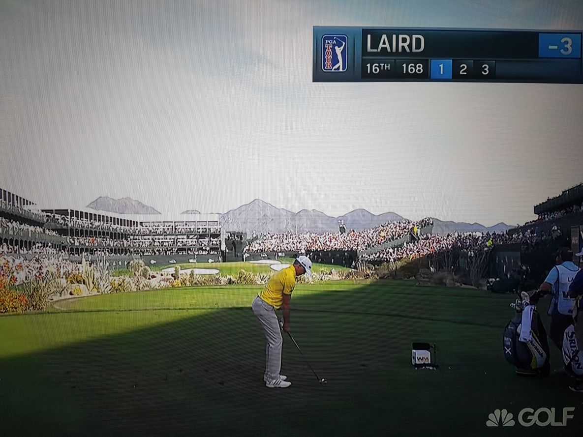 Martin Laird brought the three-story stadium crowd to their feet in holing a six-foot birdie gem at the 16th on route to a superb 67 on day one of the Waste Management Phoenix Open.