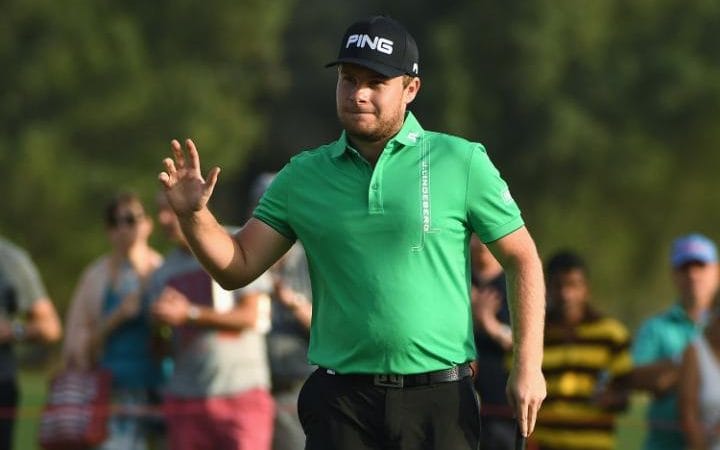 The 25-year old England star, who seems to like wearing green, capped his round with three birdies in succession from his 13th to move to three under par.