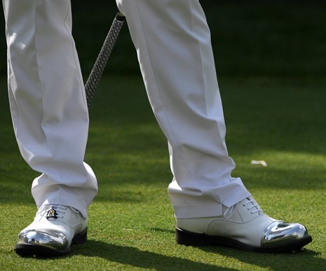 Scott Hend’s eye-catchng silver-tipped shoes at 2017 DP World Tour Championship. (Photo – European Tour/Getty)