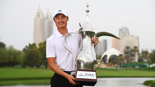 China 22-year old sensation Haong Li wins the 2018 Dubai Desert Classic. (Photo – European Tour/Getty)