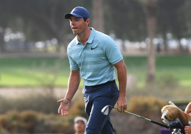 Rory McIlroy’s reaction to a shot over the final day of the 2018 Dubai Desert Classic (Image –