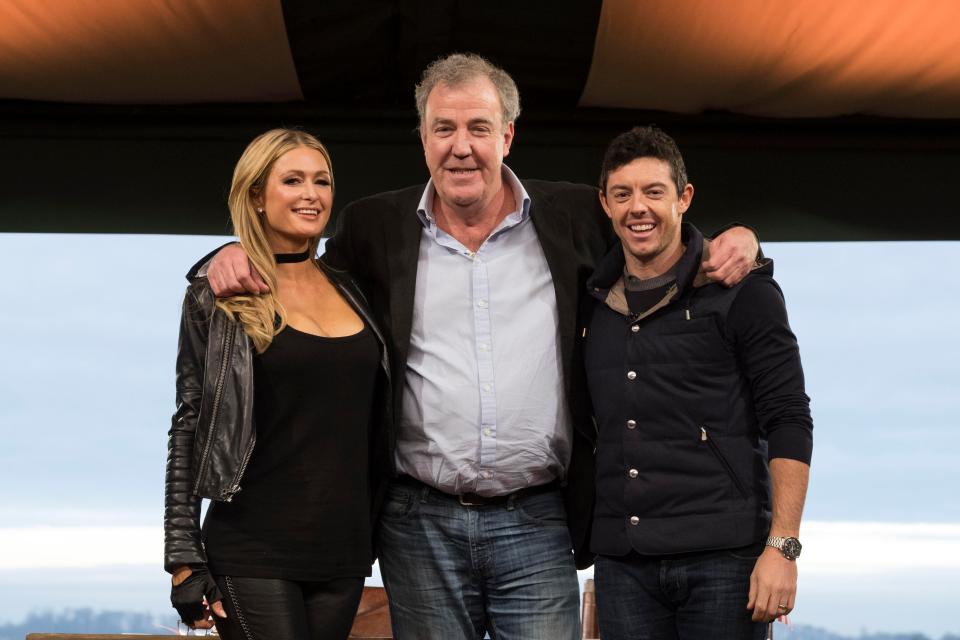 Paris Hilton and Rory McIlroy with Jeremy Clarkson from The Group Race’.