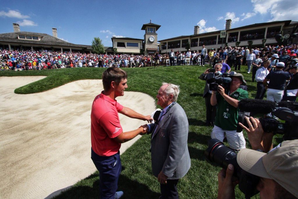 Bryson DeChambeau is congratulated by Memorial host Jack Nicklaus