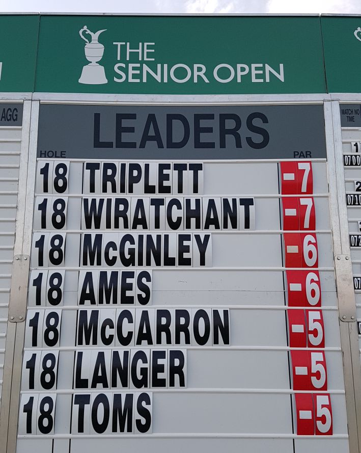 American Kirk Triplett and Thailand’s Thaworn Wiratchant head the over-50s field with seven-under par 65s and with Wiratchant birding the last just on 8pm while prolific-winning Bernhard Langer is well-placed at five-under.