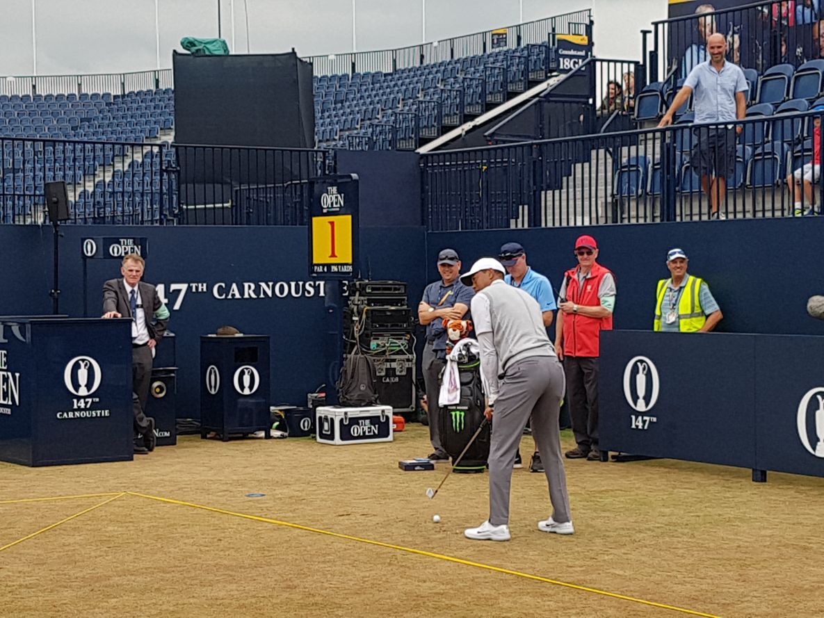 And the 14-time Major winner was keen to get a look at the Scotland course teeing-up around 3.40pm and hitting off the first.