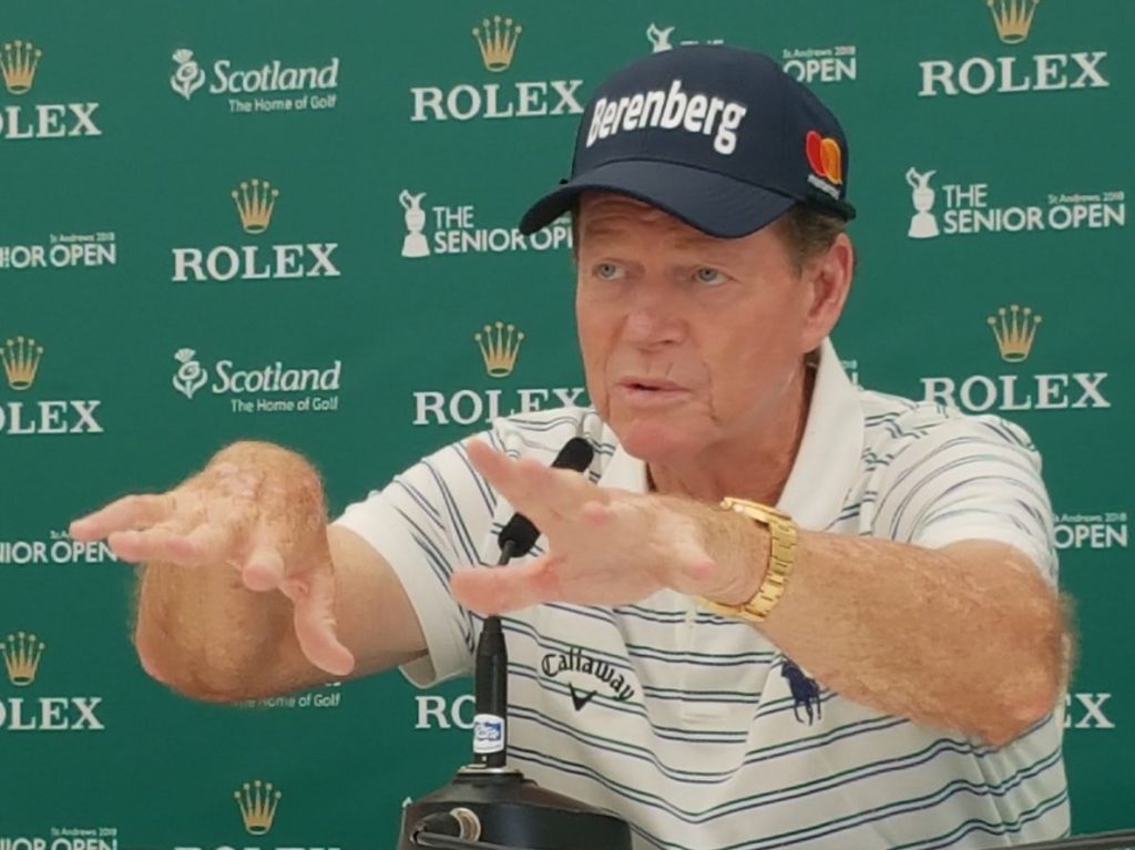 Eight-time Major winning Tom Watson making a point during his pre-Senior Open press conference (Photo @tourmiss)