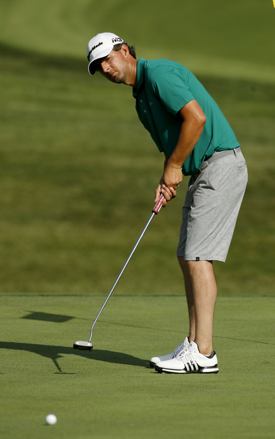 Zach J Johnson, and not to be confused with the double Major winning Zach Johnson, working on his putting this week at Bellerive