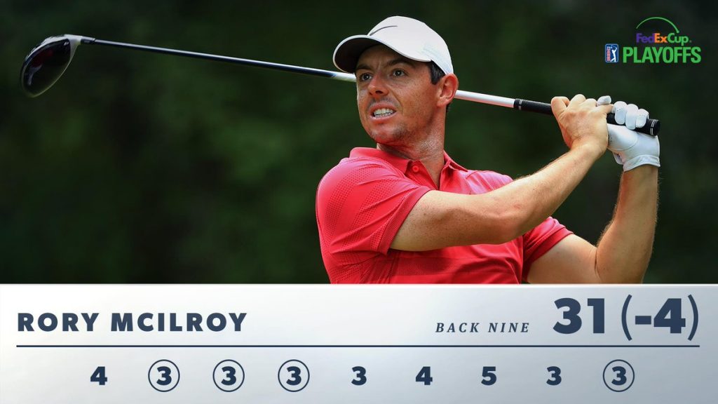 Rory McIlroy let slip joining golf’s ultra-exclusive ‘Mr. 59 Club’ with late round back-to-back bogeys in joining Tiger Woods in the lead with a 62 on day one of the BMW Championship in Philadelphia.