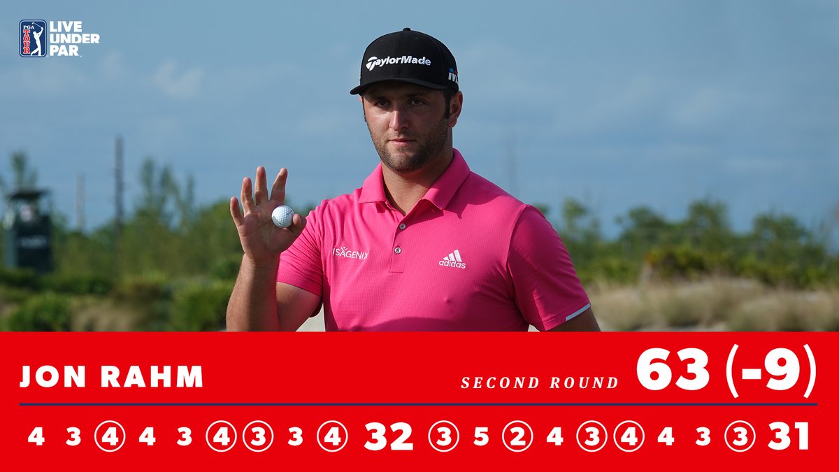 Big-hitting Spaniard Jon Rahm shoots a 63 to move to a share of the lead on day two of the Hero World Challenge