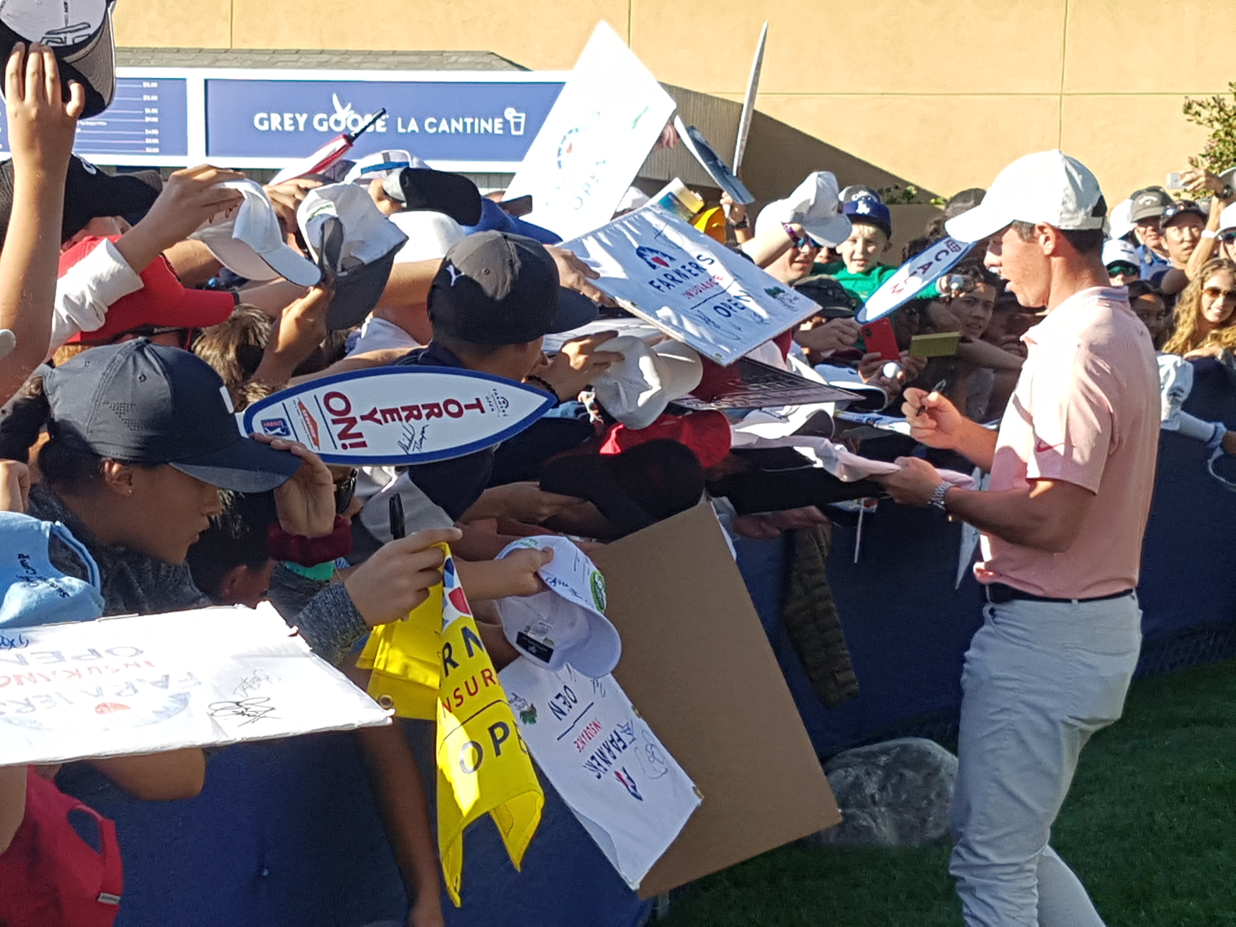 Rory McIlroy in great demand for an autograph after his maiden appearance at the Farmers Insurance Open. (Photo – www.golfbytourmiss.com)