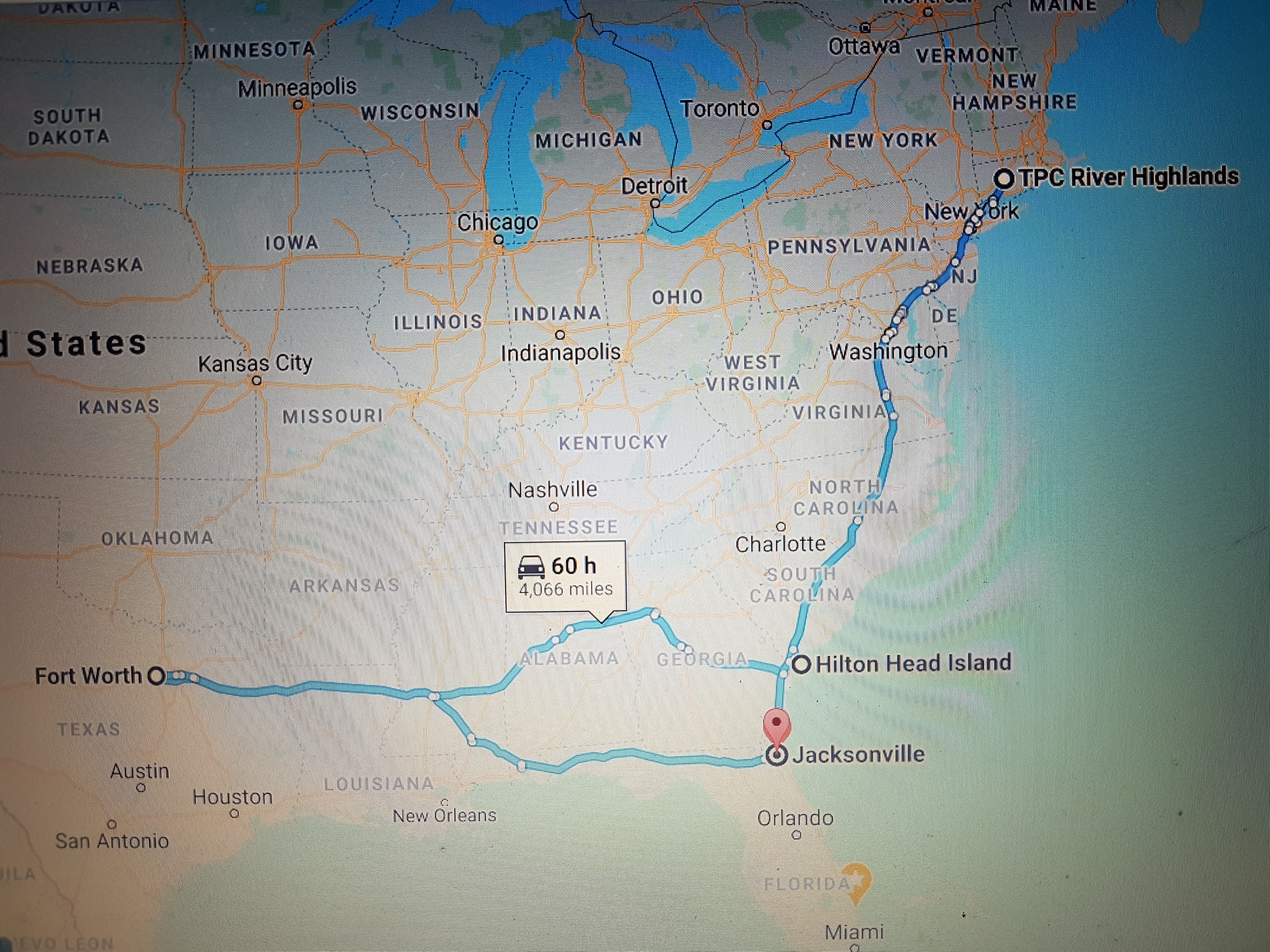They will then hit the I-95 for the 900-miles north to Connecticut for the Travelers Championship, and an event won by Knox in 2016, before the 1,100-miles return trip back down the I-95 to their Florida home.