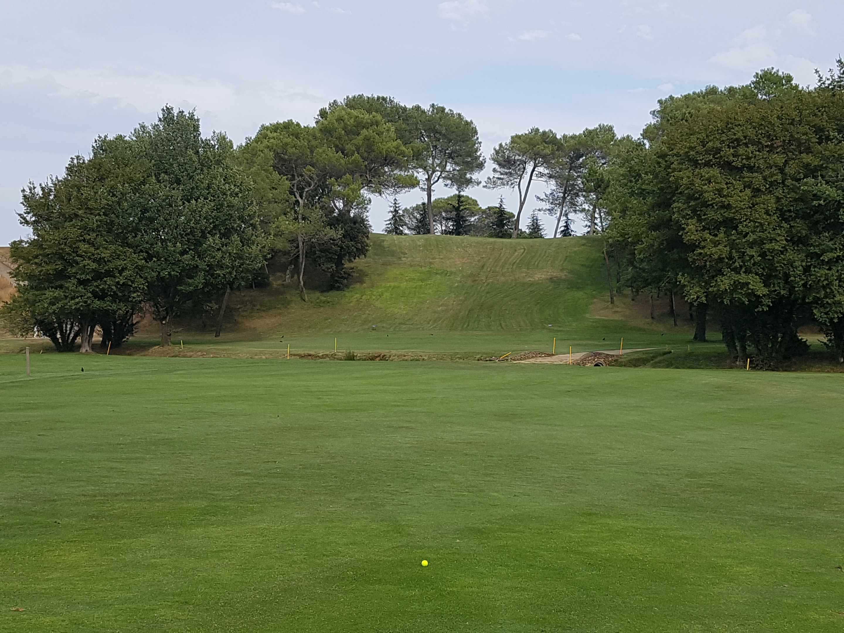 The second hole, a par-4 of 313 metre off the yellow tees, is an early example of Berthet’s work. Standing high up on tee, you are faced with a drive over oaks trees bordering a water feature well below and with the hole doglegging right. The second hole is rated the No. 5 index but a magnificent risk-and-reward hole just two holes into the round.