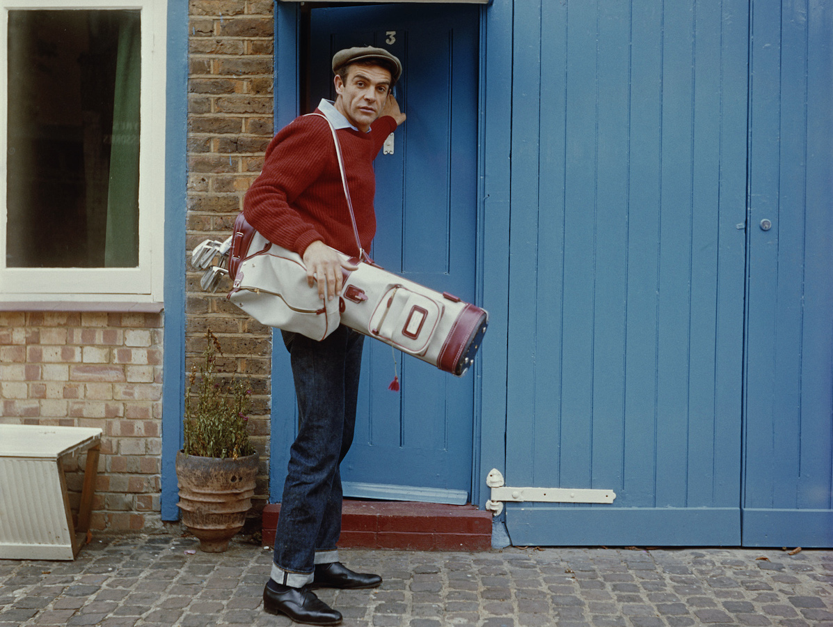 Sean Connery ala James Bond leaving the house back in 1962 for a game of golf.