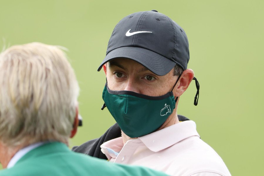 Rory McIlroy in a Masters mask. A sight hopefully we may never see again at Augusta National after this week