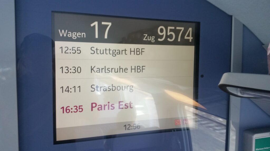 In travelling from Munich there is a change of trains at Stuttgart but that’s not an issue as more often than not it is just going from platform to the next, so a very easy change and then next stop Paris.
