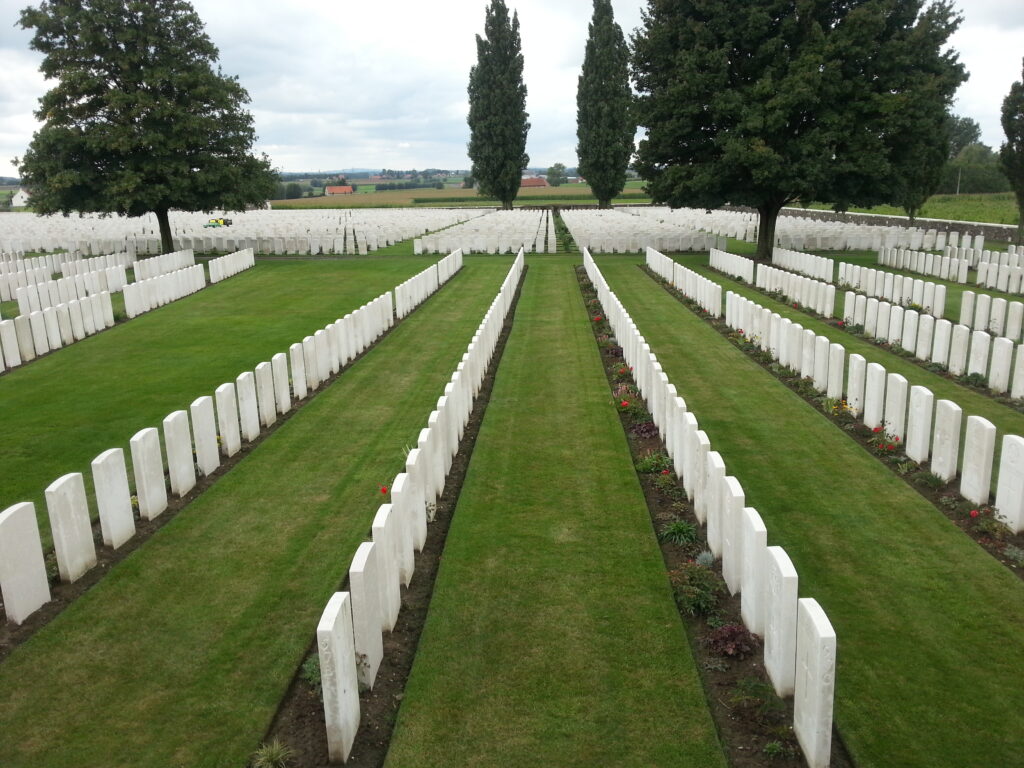 After the Armistice in November 1918, the cemetery was greatly enlarged from its original 343 graves by concentrating graves from the battlefields, smaller cemeteries nearby and from Langemark.