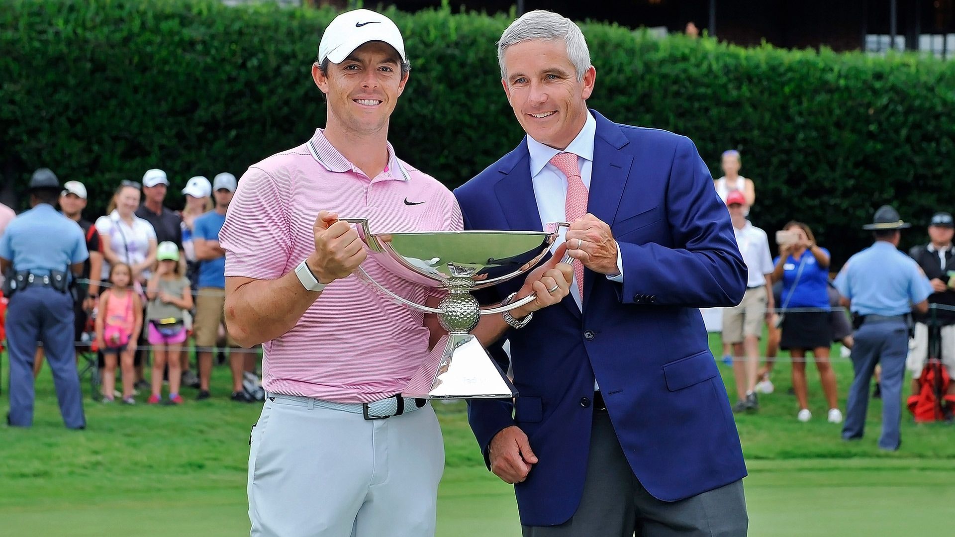 Europe’s top golfer Rory McIlroy and golf’s top administrator Jay Monahan