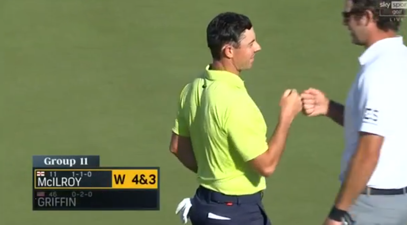 McIlroy was never behind in his match against Griffin who clearly strugged but a win is a won and it handed McIlroy a much-needed confiedence boost after his first round demolition.