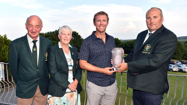 Seamus Power, winner of the Barbasol Championship on the PGA Tour last weekend is honoured by his home club West Waterford on Friday night. Pictured are Dave Condon, president; Edward Hickey. captain and Nell Supple, ladies captain. Picture: Eddie O’Hare