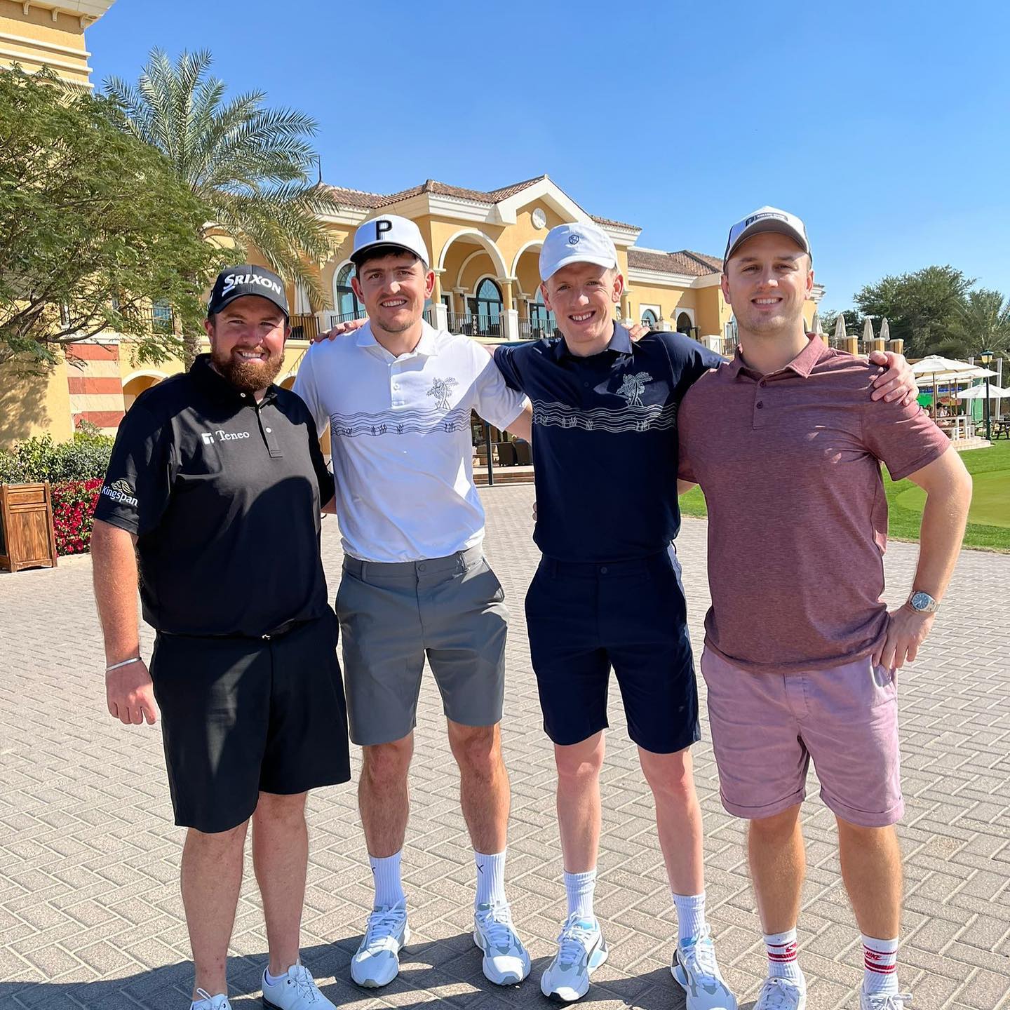 Shane Lowry buried the bitter disappointment of last Sunday’s final at the Abu Dhabi HSBC Championship to unwind Monday playing the company of England football internationals Harry Maguire and Jordan Pickford at the Els Club in Dubai.